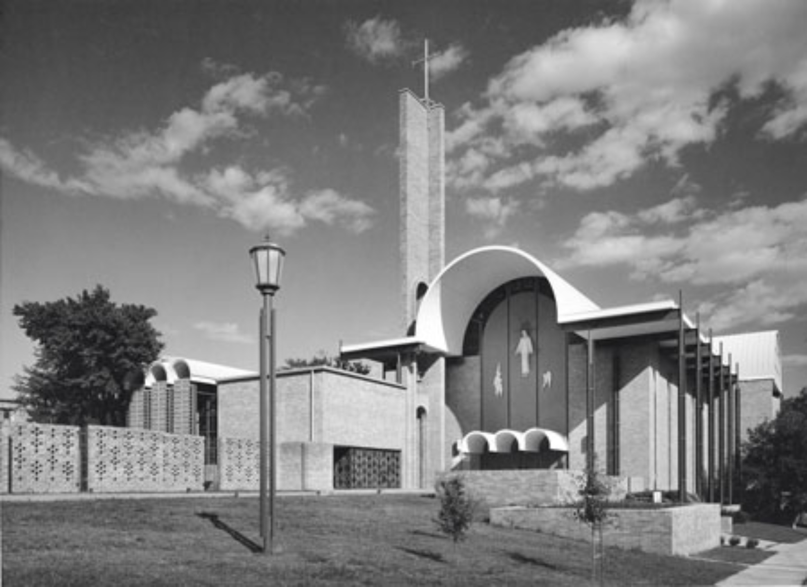 Image (right): St. Martin’s Evangelical Lutheran Church, Austin, Texas. Robert Mather of Jessen Jessen Millhouse and Greeven. 1960.Credit: Jason John Paul Haskins, 2013.