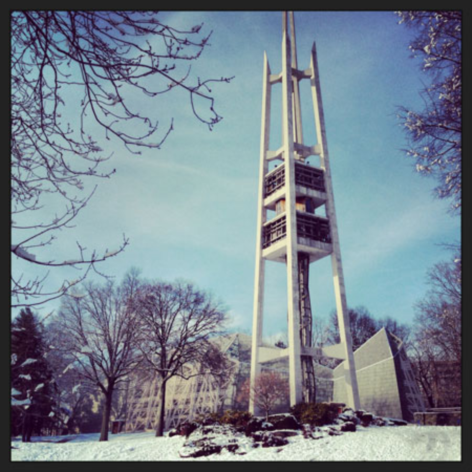 In the early 1950’s, the building committee of the First Presbyterian Church in Stamford, CT was evaluating where to put a typical white-steeple New England church on their vacant 11-acre campus. A member of the committee had just returned from a business trip in Michigan. There he saw a church in Midland designed by Alden Dow, a modernist architect. The committee’s dialogue changed in mid-stream. The result was a exemplary, modernist sacred space designed by Wallace K. Harrison.