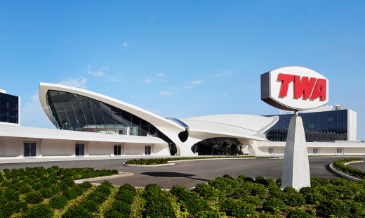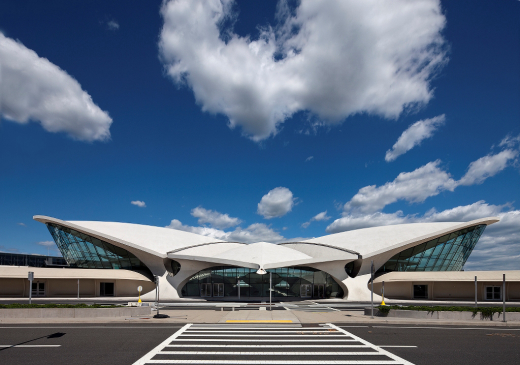 The jury awards a Design Citation of Merit for the completion of the TWA Flight Center renovation and the creation of the TWA Hotel. Designed by Eero Saarinen and opened in 1962, it is one of the world’s most iconic examples of modern architecture. The restoration project was undertaken in two phases, the first of which won a 2015 Modernism in America Award. The second phase, for which this award is given, completed both the interior and exterior Flight Center restoration and expanded the project for the new hotel use. The new hotel wings are positioned outboard of the Flight Center’s two connector tubes, preserving the primary historic scene from the main entrance. Sheathed with dark gray glass curtain walls along the curves of the building, the hotel wings are complementary but distinguishable from Saarinen’s original design and pay homage to the midcentury aesthetic. Restoration of the historic Flight Center involved work on the exterior shell, curtain wall and entrances, interior finishes, MEP and life safety systems, and landscape. Using as-built record drawings, archived records, samples, and historic photographs dating from 1964, the design team employed state-of-the-art diagnostic tools to restore the building to the Secretary of the Interior’s Standards for Restoration, working closely with the New York State Historic Preservation Office. The Saarinen Archives at Yale University yielded original architectural drawings, specifications, shop drawings, photographs, and project material samples. Restored interior details including the split-flap Solari boards fabricated in Italy; 20 million penny tiles custom-made for the project in China; chili pepper red carpeting to match the original archival samples; upholstery and ornamental metalwork in the former first-class Ambassadors Club; and reception desks rebuilt to original specifications. Vacated in 2002, the Flight Center opened for business as the TWA Hotel in 2019 as a striking model of creative adaptive reuse while preserving the original spirit of the site.