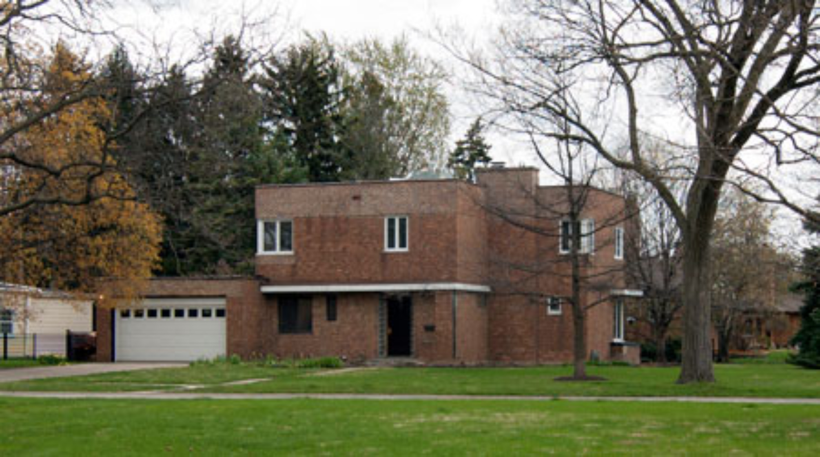 View of the front of the Benda house in Riverside, Illinois