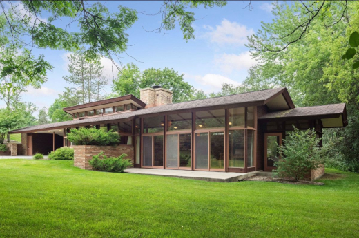 For sale for the first time in 50 years, this one-of-a-kind architectural gem was exceptionally maintained by the original owners. This beautiful home, known as "The Grabow House", was designed by John Howe who was Frank Lloyd Wright's chief draftsman for 25 years. The home features a prominent living room with an extensive hearth, a vaulted ceiling with a massive wall of windows perfect for gazing at the wildlife, and an oversized built-in sofa to accommodate entertaining. The living room opens up with sliding doors leading out to a patio and screened porch surrounded by brick planters that blend the outdoor space with the interior brickwork of the fireplace. The house exudes warmth from the cedar and oak wood tones and the abundance of natural light from the volume of clerestory windows that envelope the home. Every space is maximized by the built-in storage and shelving throughout. Enjoy single level living at its finest in this modern house built ahead of its time!