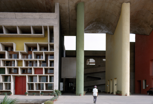 Enjoy breakfast, before embarking on a private exploration of Chandigarh, India’s first planned city after independence. Its master plan was designed by Le Corbusier with contributions from Pierre Jeanneret and others and became a global symbol of postcolonial optimism. We will visit Le Corbusier’s monumental Capitol Complex: comprised of the Palace of Assembly, Secretariat Building, and High Court, collectively representing the three pillars of democracy. These raw concrete modernist masterpieces combine function with sculptural form, incorporating primary colors and civic symbolism throughout. Nearby, the Open Hand Monument, expresses peace and unity. This sentiment continues at Gandhi Bhawan, the Modernist study center designed by Pierre Jeanerret and B.P Mathur situated atop a pond of serene water. Our last stop before heading to Ahmedabad is the College of Architecture (CCA), where design pedagogy is embedded in the built environment.