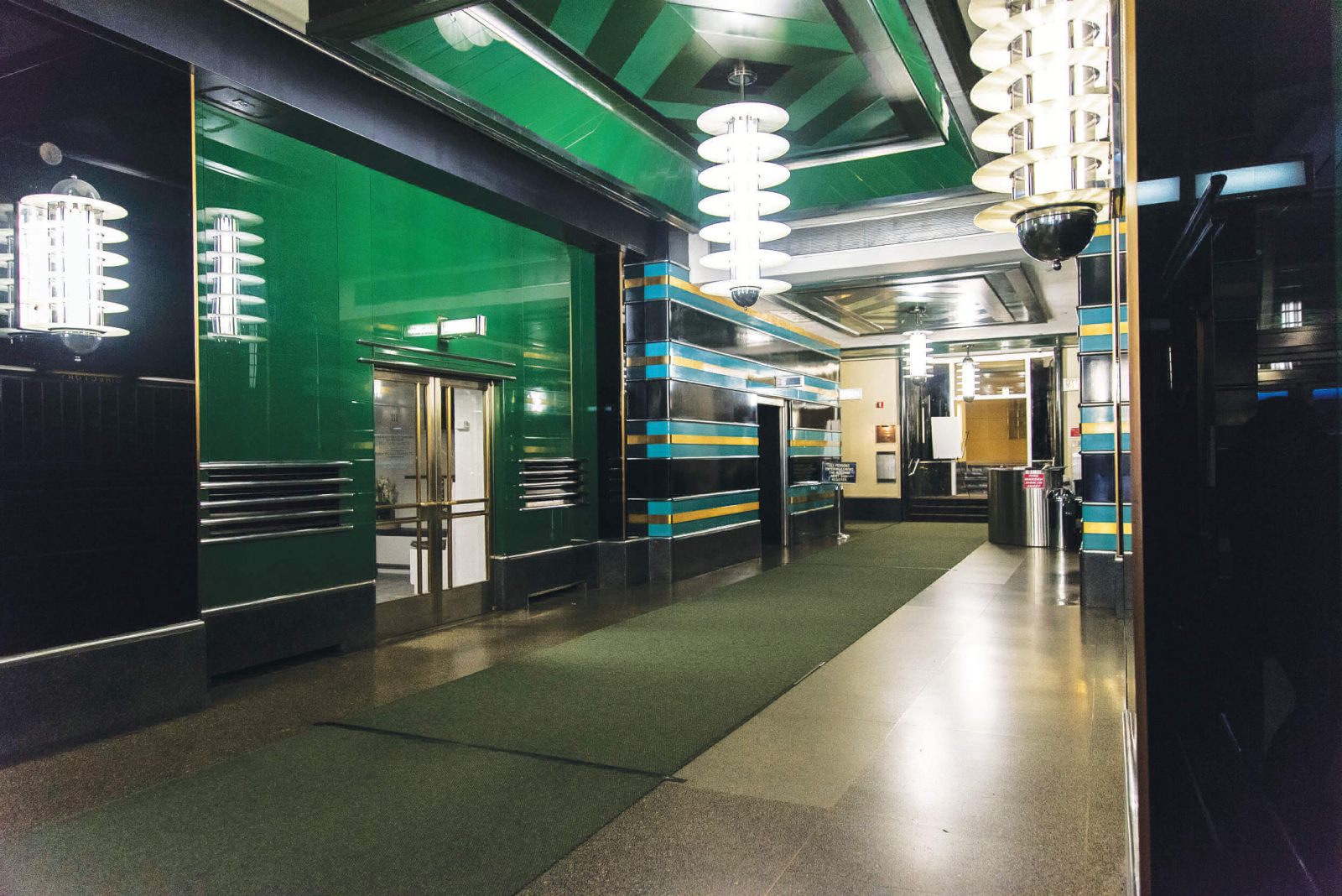 A representative for the project told The Architect's Newspaper that “historic items have been carefully stored as we explore how some of them can be reintegrated into a new lobby design.” The spokesperson further elaborated that the owner plans to include the Hood vestibule banding in the new lobby, and that they have stored the lime green metal wall panels, elevator doors, chrome elevator indicator accessories, terrazzo floor, and blade signs, among other elements. The idea of these items being stored with no plan for their reintegration is a story we have heard before and does not inspire much confidence.