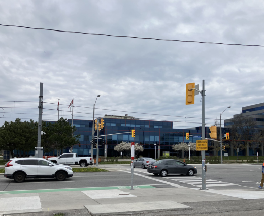 An example of a corporate campus in the same area that remains in use, but is rumoured to be pending demolition, is the Scarborough corporate campus of Scotiabank. Scotiabank’s Scarborough corporate campus is located in the heart of the Golden Mile right on Eglinton Avenue, and remains as one of the few corporate campuses that have not been transformed into small scale retail shops or manufacturing facilities, private for-profit colleges, etc. Rumours are circulating that the property has already been sold with a leaseback arrangement or that the property has already been sold to developers just waiting to convert the massive tract of land into condominium towers, once the remaining few workers that still occupy the space have been relocated or eliminated.