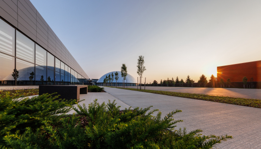 For about 50 years, this remained the only major change to the Design Center; proposals exist for several renovations and additions but none were seriously considered until quite recently as part of a proposed $1 billion campus-wide upgrade project. The new addition to the Design Center, referred to as “Design West” added 360,000 square feet to the existing Saarinen facility, resulting in the largest automotive design facility in the world. Designed by SmithGroup, the new building interacts with its historic counterpart by wrapping around the iconic Design Auditorium or “the Dome,” enveloping this architectural marvel and centering it as the new spiritual center of the complex. The building tries not to compete with its more famous sibling next door – SmithGroup’s design approach sought to celebrate the details of the original while simultaneously creating a state-of-the-art automotive design facility. It also had the benefit of 60-plus years of feedback from the designers and sculptors who worked at GM Design and had the lived experience of working in the Saarinen building.