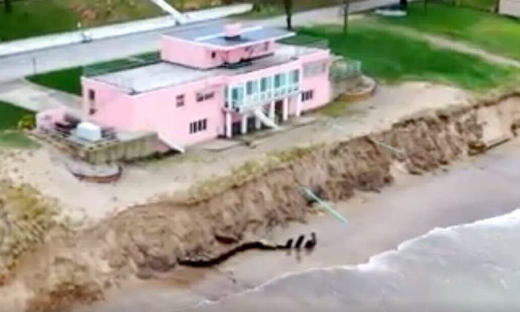 In Beverly Shores, Indiana, the Florida Tropical House, as well as other buildings along the shoreline, are threatened by extensive erosion that is edging dangerously closer.