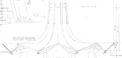 Lori worked in the offices of several architecture firms in Austin as a secretary and bookkeeper and she became involved with NAWIC as a founding member of the Austin chapter.9 She also worked for John as his private practice grew. In 1965, while serving as the chapter’s President, Lori and the group conceived the idea of the gazebo for Town Lake. At her urging, John agreed to personally design the gazebo on behalf of NAWIC.10 Per Mrs. Nill, John referred to his final design for the gazebo as an “inverted morning glory.”11 He designed the gazebo to compliment nearby Municipal Auditorium (demolished 2002). With his design, the group was ready to launch the project as a gift to the City of Austin.