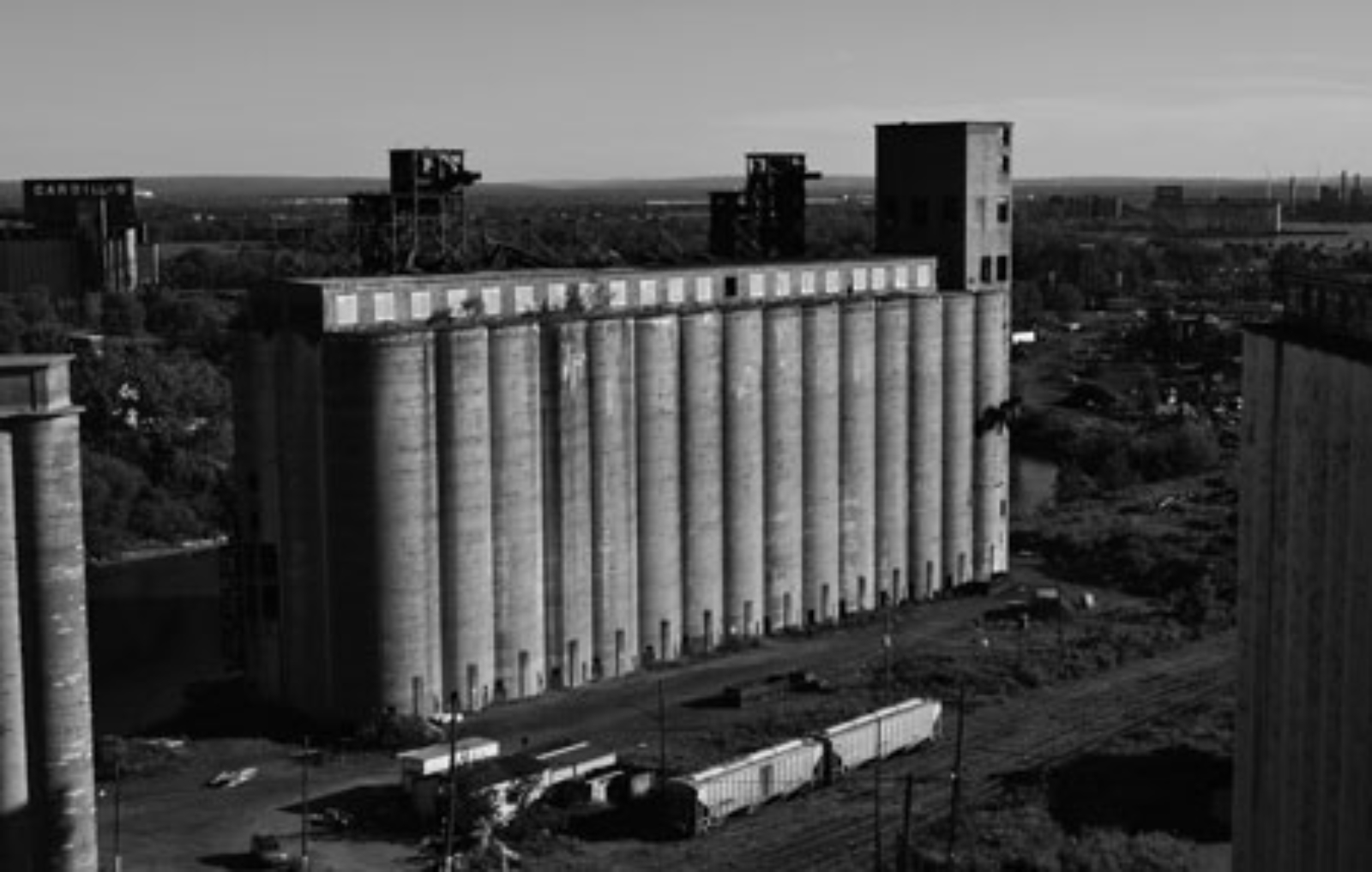 Today, the grain elevators of Buffalo comprise the most outstanding collection of extant grain elevators in the United States and collectively represent the variety of construction materials, building forms, and technological innovations that revolutionized the handling of grain. Although a small number of sites have been demolished (including the 1901 steel Dakota Elevator published by Gropius), nearly twenty elevators dating from 1897 to 1954 have survived the collapse of the Great Lakes grain trade. Most are abandoned, and only a few are still being used in the grain industry. Together, they form an extraordinary landscape of dense, sculptural verticality clustered along the Buffalo River.