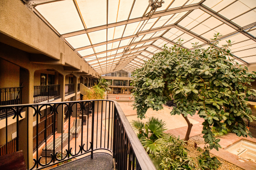 The 1973 building was the first to open to occupants. Property Manager, Lauren Faltys, expressed her excitement at the occupancy rate, which reached 95% of available units by mid-September. More units were slated to go on the market this month. 6-month to year-long leasing options account for some of the residents who hail from medical and military fields. While the hotel is no longer in a perfect location for travelers, its proximity to the highway has made it ideal for such tenants. Laundry facilities are on-site, apartment kitchens are all-new, and adjoining rooms have had their connecting doors removed to create one-bedroom apartment floorplans. A coworking lounge, theater, and storage units (an optional upgrade for residents) have made use of repurposed meeting rooms and themselves repurposed some of the hotel's furniture. What was Delfino's has become a game room, with some of its original wood fixtures left intact. Some of the tower-level suites feature expansive glass windows and views of the Sandia Mountains in the distance. Loft units are original to the 1970s design, part of the idea of 'luxury' crystalized in the architectural planning. In a way, the buildings are harkening back to their origins and the vision the collective vision architects and owners had for the property. And much of their original design remains, however contemporary it looks today under a crisp coat of paint.
