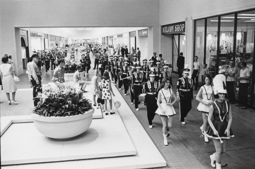 A crowd of 55,000 turned out for NorthPark’s opening day, on August 19, 1965. Gordon MacRae, star of stage and screen, led the assembled in a rendition of “Oh, What a Beautiful Morning,” the Rabbi Levi Olan, of Temple Emanu-El, offered a prayer, and then came the cutting of a giant green ribbon that circled the entire complex. And then the stores opened, more than 80 of them, including Neiman’s, Penney’s, Titche’s, Woolworth’s, a Doubleday bookstore, a Kroger supermarket, a Super-X drugstore, eight restaurants, a private club, two theaters and NorthPark National Bank.