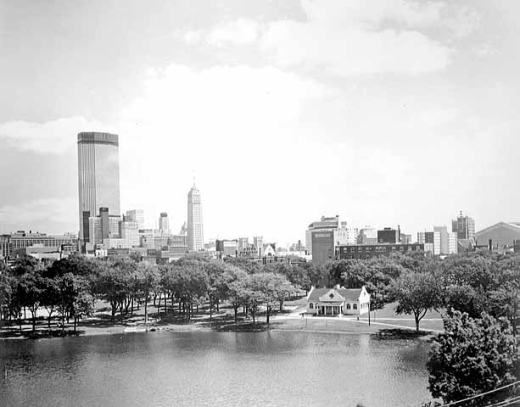 One staggering exception to this steady rate of attrition was caused by a violent storm on June 19, 1979. Cowhey was working that night, and from the top floor he could see an approaching “black curtain” punctuated by “bright blue explosions” as trees downed power lines and transformers overloaded across the city. Winds tore through the Crystal Court and the curtain wall of the tower was battered with pea-gravel ballast from the roof of a nearby building. “It looked like somebody had machine-gunned the mid-section of the building on the south side,” says Cowhey.