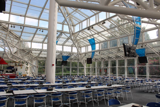 In contrast to some of HOK's other work of the same time period that was leaning towards Postmodernism, the NASM restaurant "is modest, light and glassy, and only subtly references the past through its pyramid-like form," in keeping with the simple, Modernist forms of the main museum itself.