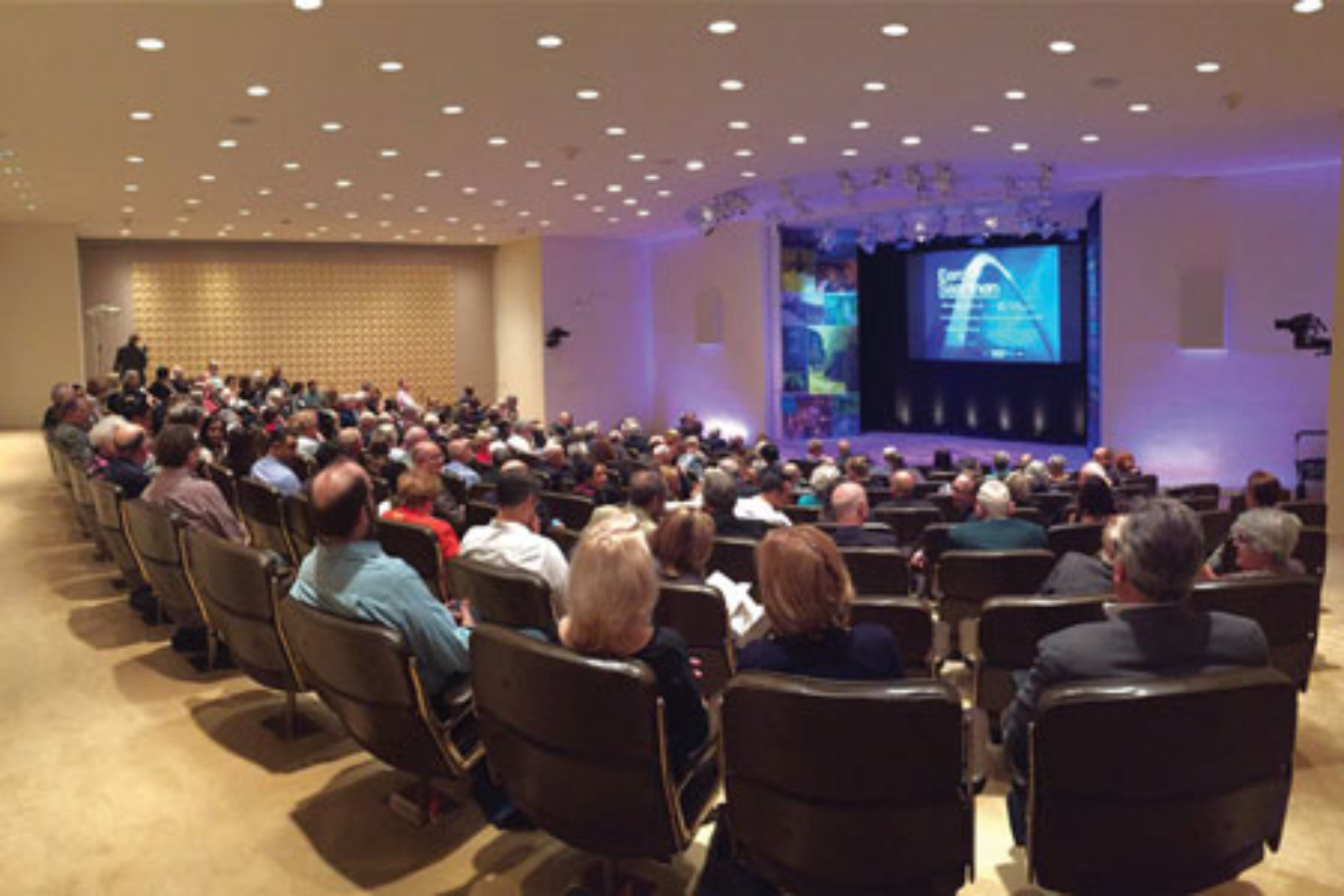 On Thursday September 15, 2016 Docomomo US members, friends, members of the press, esteemed colleagues, and members of the Saarinen and Miller families joined Docomomo US, THIRTEEN, and director/producer Peter Rosen for the New York primier screening of Eero Saarinen: The Architect who Saw the Future. The film was shown in the beautiful lower-level screening room that boasts a recently restored Shelia Hicks installation. After the screening, guests were invited for a reception on the eleventh floor overlooking the garden atrium.