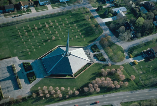 As we conclude this year’s exploration of suburban corporate campuses, our thematic focus for 2025 shifts to the multitude of religious, spiritual and faith-based sites across the country – illuminating their distinct styles, development, and community impact. A deeper examination of this common typology furthers our understanding of Modern architecture and design in the United States.