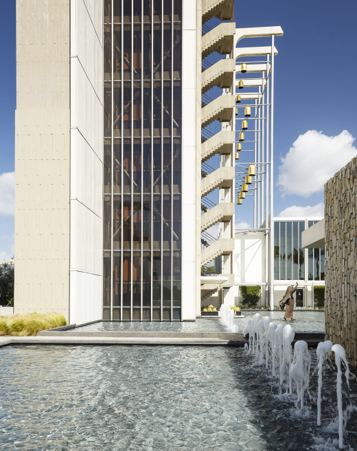 Built in 1968, the Christ Cathedral Tower of Hope has been an important Southern California landmark for almost fifty years. Designed by celebrated architect Richard Neutra in association with his son Dion, the 13-story cast-in-place concrete tower has been called “an overlooked masterwork in Neutra’s oeuvre” by architectural historian Barbara Lamprecht. Once the tallest building in Orange County, the structure is notable for its small but daylight-rich floor plates and vertigo-inducing cantilevered, post-tensioned exterior concrete stairs. The primary structural frame of the tower consists of concrete slabs and beams supported by rectangular and trapezoidal board-formed concrete columns.