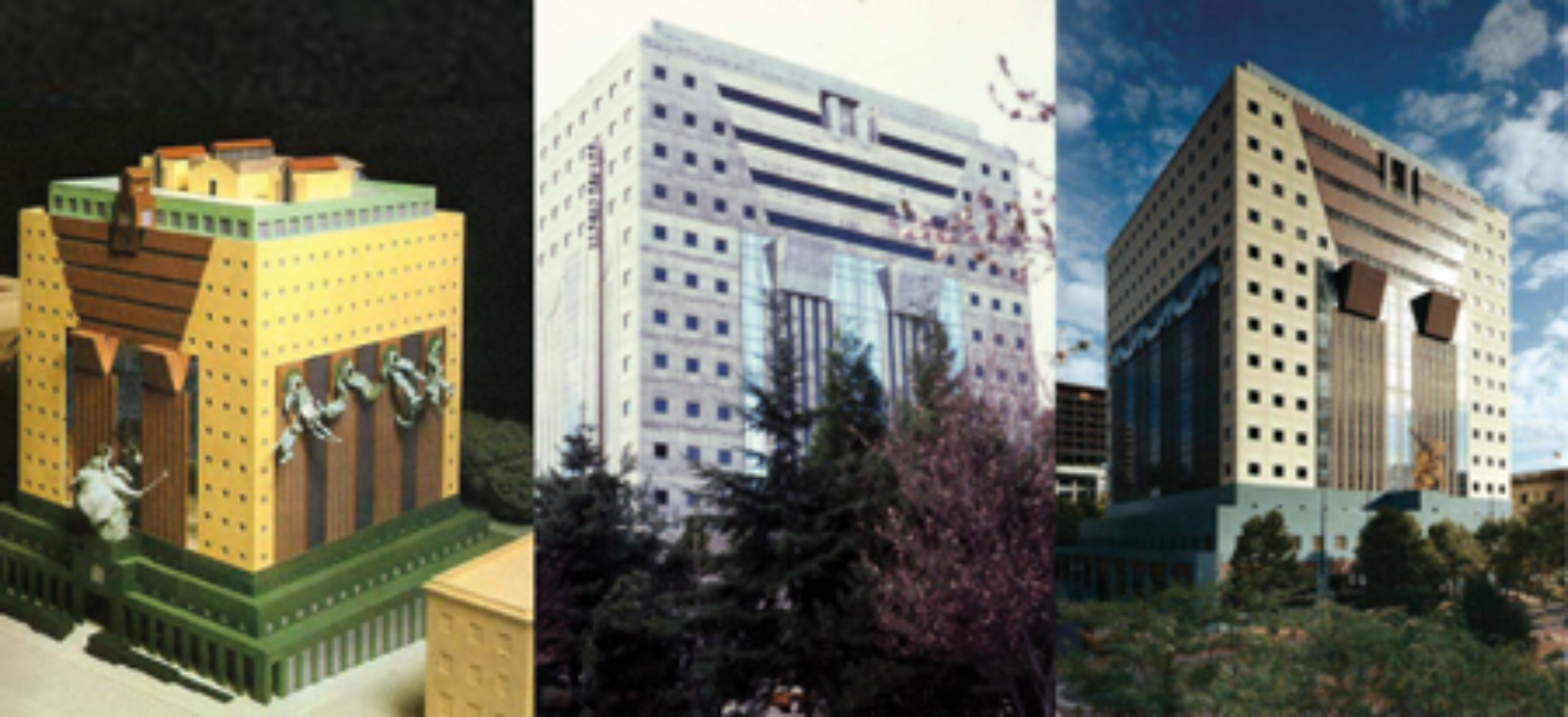 And in December 2015, the Princeton School of Architecture, educational forum for Michael Graves, hosted the Postmodern Procedures Conference. Described in the conference outline, there was a “particular emphasis on methods of documentation and analysis, technical and narrative drawing” related to Postmodern. Post Modern works, buildings, sites, and neighborhoods, as well as art works, are recognized as important design styles deserving conservation and further understanding of construction techniques. And many iconic structures are being negatively modified (Richard Meier, Bronx Development Center, 1977) or lost entirely (James Wines, Sculpture in the Environment (SITE), Best Product Stores, circa 1976)1