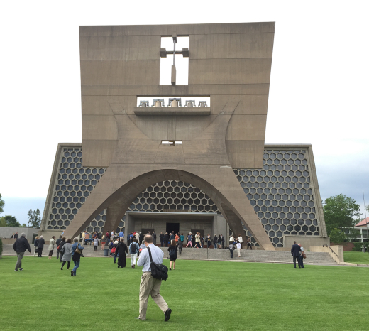 Some of my favorite memories are from various Docomomo symposia over the years: watching our tour guide arrive at Detroit’s GM headquarters in a 1950s red Corvette to the sound of a live brass band (Detroit 2016); sitting in one of America’s most photographed sunken living rooms at Saarinen’s Miller House in Columbus, Indiana (Columbus 2018); and eating donuts in front of Marcel Breuer’s St. John’s Abbey while the church bells rang (Minneapolis 2015). Maybe these are some of your favorite memories, too.