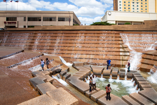 It’s a mixed bag, to be sure. Here in my part of the world in North Texas, the post-assassination “Goals for Dallas” program resulted in the loss of historic fabric, but also in the creation of significant buildings including I.M. Pei’s Dallas City Hall (it’s controversial, I know, but I like it a lot). In Fort Worth, the vibrant Hell’s Half-Acre neighborhood was cleared to create room for a new, modern, convention center (not particularly esteemed) and for the lush and lovely cascades of the Water Gardens by Philip Johnson.