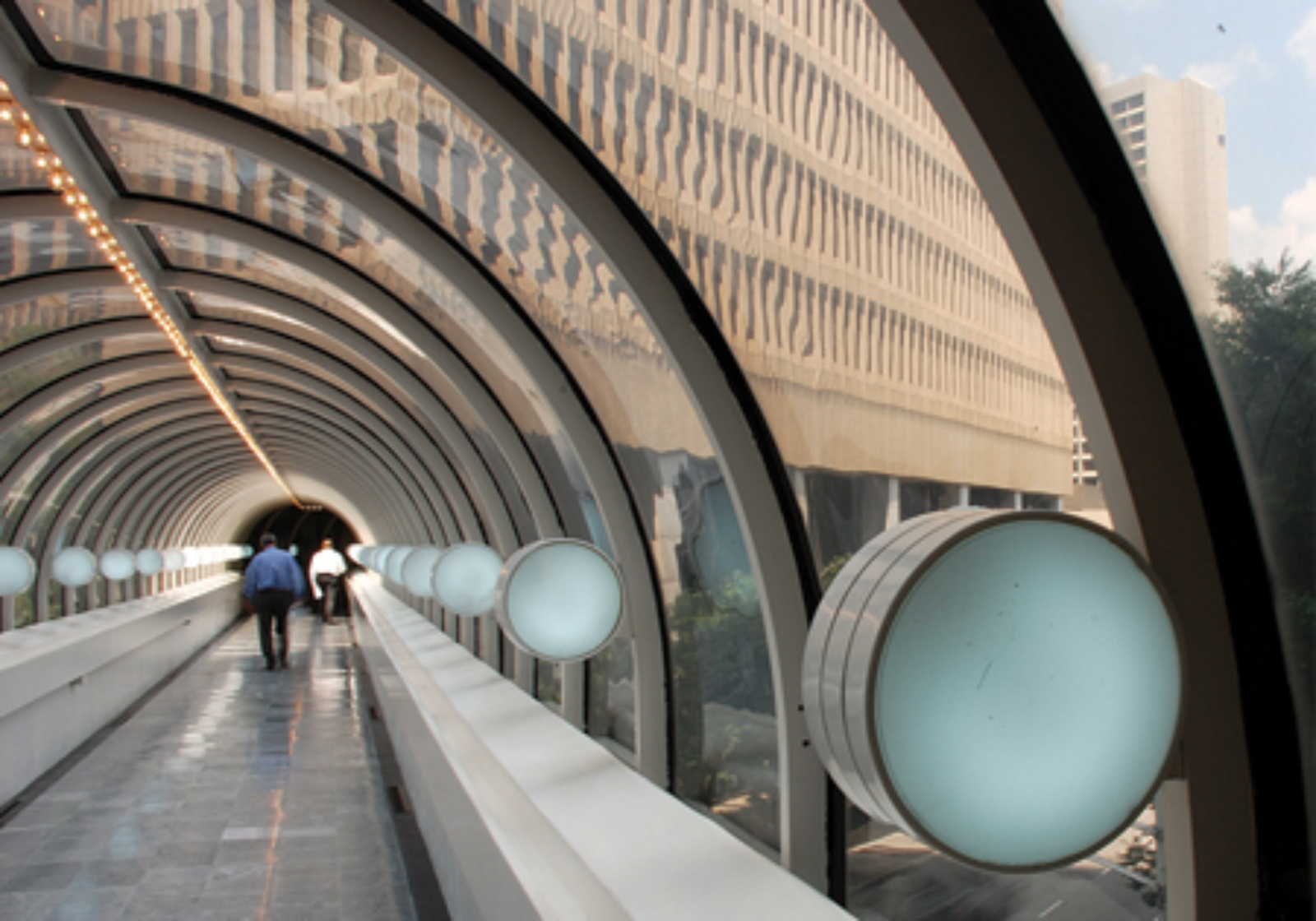 John Portman and Associates, Peachtree Center, Atlanta, 1961-present. Pedestrian skybridge connecting Merchandise Mart to adjacent office building. Photograph by Charles Rice, 2009.