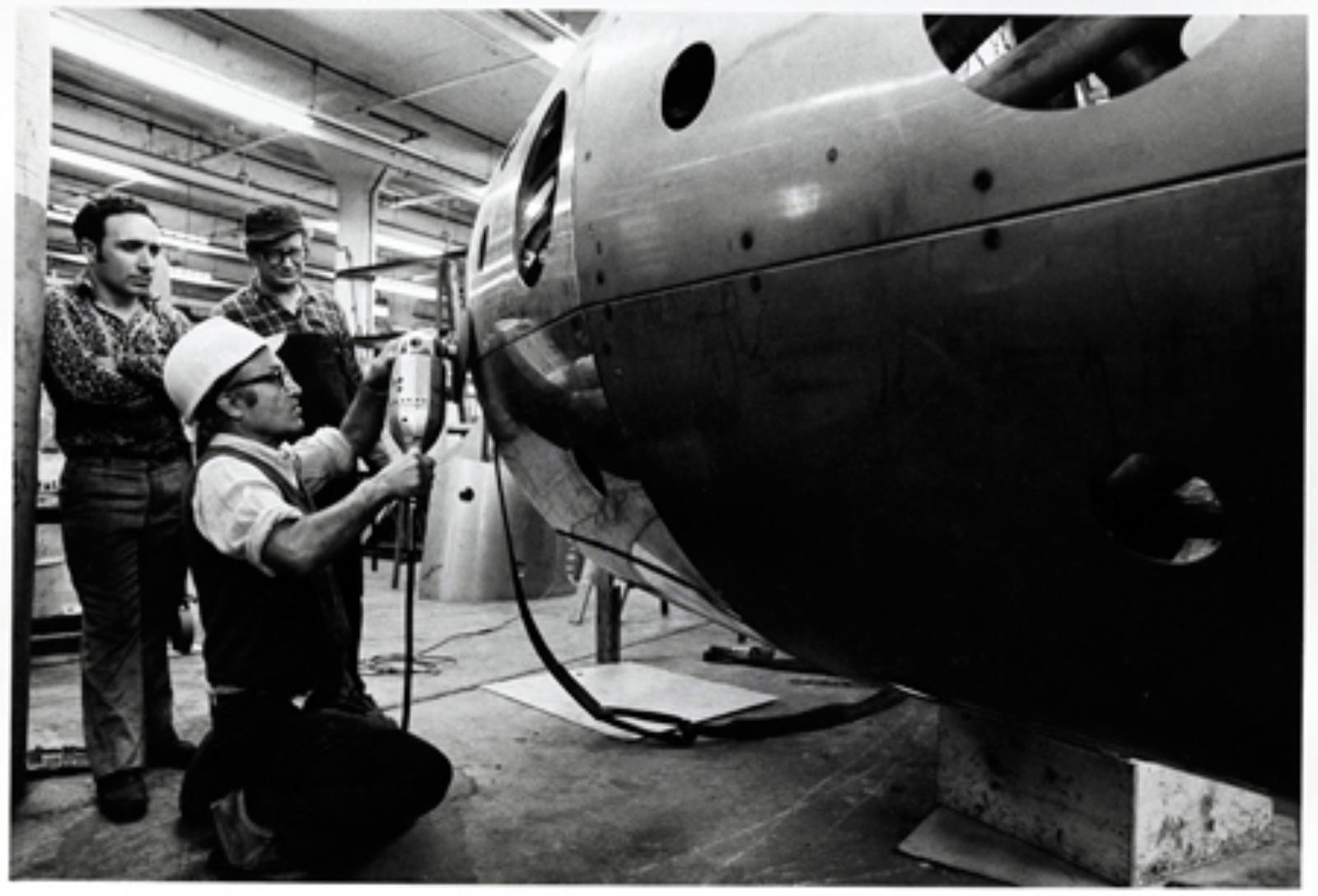 Image (above): Isamu Noguchi Welding, ca. 1976. Noguchi was very involved with every detail of his plaza design, most notable in the computer programming for the fountain jets and the finishes of steel and granite installations. Image courtesy of the Isamu Noguchi Foundation and Garden Museum.