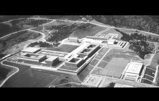 Upon receiving the commission, SOM assigned 34-year-old Walter Netsch, who had graduated from MIT in 1943 and joined the firm in 1947, as the resident architect of the project. Netsch had earlier worked on SOM projects that included the Manhattan Project town of Oak Ridge, Tennessee, military installations in Okinawa, Japan, and the U.S. Naval Postgraduate School in Monterey. The Monterey project included a complex of buildings for 800 students, designed using a modernist architectural vocabulary. Netsch was inspired not only by European modernism (especially the work of Gropius and Le Corbusier) during his education, but also by the work of Alvar Aalto and of course, working out of SOM’s Chicago office, by American “Chicago School” architects that included Jenney, Sullivan, and Wright.(2)