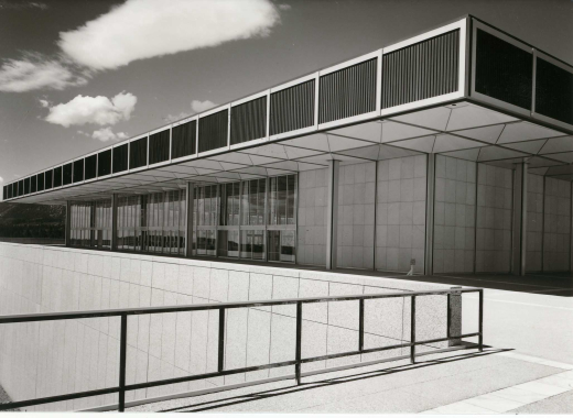 Working with Netsch on the Air Force Academy project was a design advisory board appointed by the Secretary of the Air Force that included Eero Saarinen, Wallace Harrison, and Welton Becket. Emphasizing issues of economy, efficiency, and practicality, SOM adopted an International Style modernist vocabulary for the Academy design – a vocabulary they had employed earlier in the 1950’s with projects such as Lever House and the Manufacturers’ Trust Bank.(3)