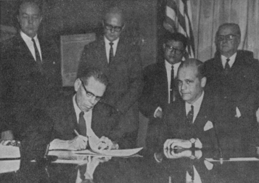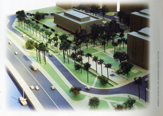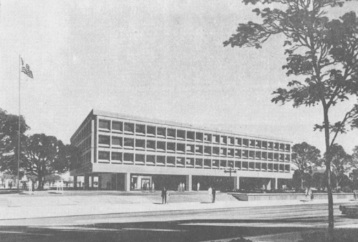 Design Principle: I. M. Pei. Project Architect: Pershing Wong; Associate Architect: John LoPinto and Assoc.; Juan B. Maglia, President of the Comisión Financiera de la Rambla Sur; Construction Firm: Empresa Carcavallo S.A., Washington Carcavallo, Vice President; Consulting Engineer: Horacio García Capurro