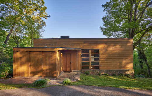 A Residential Design Citation of Merit is given for the restoration of Clauss Haus II at Little Switzerland, completed in 1941. Clauss Hauss II is an early masterpiece of American modern design, conceived by Alfred and Jane West Clauss, former employees of Mies van der Rohe and Le Corbusier respectively. The pair chose to create a radical new housing development in an unexpected location, the ridge of Brown's Mountain near Knoxville, Tennessee. Although only completing five of the original ten planned houses, the Clauss' development of Little Switzerland is an early and rare example of an enclave of International Style homes in the US. This residence, the second one occupied by the couple, has been extensively renovated since 2015, bringing it back to peak form and preserving the original forward-thinking design. Exemplary efforts were made to retain and restore the redwood doors, window sashes, frames and siding, and replace only as needed. A multi-stage program to remove thick layers of paint from the siding was initiated and will continue as part of a long-term maintenance plan.