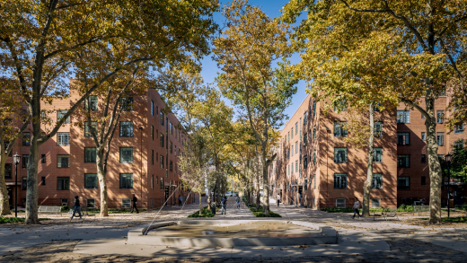 A Residential Design Award of Excellence is given for the restoration of the Harlem River Houses. Built in 1936-37 to house African Americans, the complex is one of the first federally subsidized public housing projects in the city, and its modernist design, embodying a simultaneous commitment to New Deal social progressivism, set a precedent for higher standards in public housing across the country. In 2020, a major rehabilitation harnessed public and private funding to upgrade the buildings and apartments to ensure their suitability for ongoing use as public housing, while at the same time preserving the historic character of the landmark design. The extensive restoration included repairs to the buildings’ brick facades; replacement of non-historic windows with new aluminum casements matching the originals; the provision of electric central VRF heating and air conditioning to every residential unit; updating all 577 apartments with new finishes and fixtures; and the restoration of the historic courtyards, playgrounds, fountains, and sculptures by Heinz Warnecke and other artists, among numerous other improvements to resident accessibility and comfort—in keeping with the progressive spirit of the property’s design.