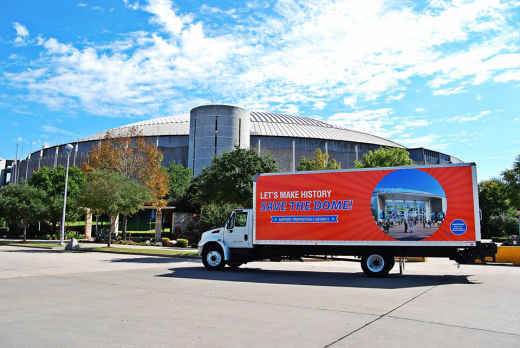 The Dome Mobile, a 26-foot truck outfitted with Astrodome graphics, an Astroturf floor, genuine