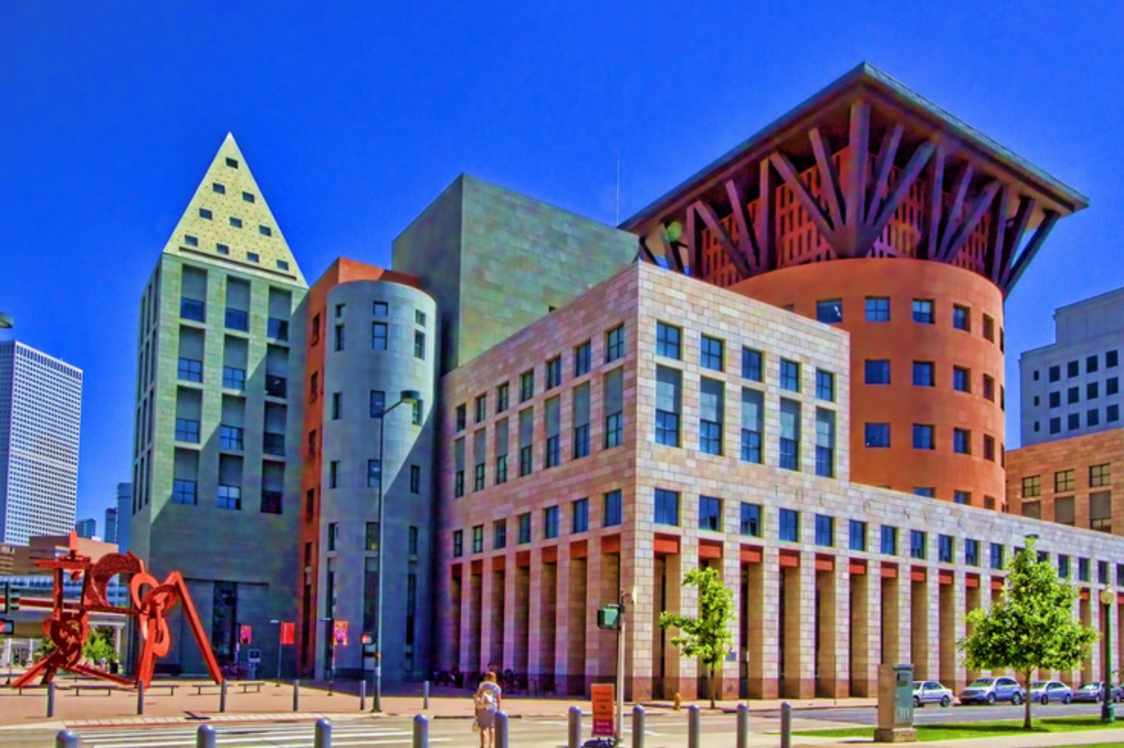 A definitive description of the Post-Modern style, if such a thing could be written, would require far more space than is available here, for it embraces a number of substyles or modes and its central principle is eclecticism, the choosing and using of features from other styles – perhaps from two or more in the same design. The most that can be done is to give the building watcher a few hints to help him recognize a Post-Modern building when he sees one. With respect to overall form, one might remember that one Post-Modern architect described his idea l as "a decorated shed." If that fits the building in question, well and good - but many Post-Modern buildings, far from being shed-like, are highly articulated. As for the roof, it may be of any type, rectilinear or curvilinear. Sloping roofs are often, for the sake of effect, of steeper pitch than function would dictate; among the commonest clichés of the style are pyramidal roofs set on square pavilions or turrets and nonfunctional, roofless gables pierced with round holes. The circle is much used for contrast; there may be an outsize round window in the façade.