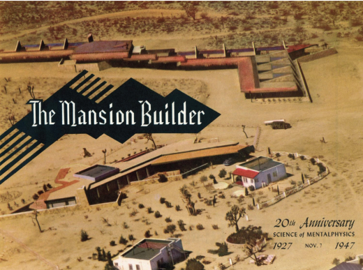 Founded in 1927 by British journalist and cartographer Edwin John Dingle, the “Science of Mentalphysics” integrated Eastern and New Thought breathing techniques, mediation, diet, and right-thinking practices. In 1941, Dingle, by then known as “Ding Le Mei” and intending to build an actual town, consecrated the New City of Mentalphysics property, which quickly became a teaching, retreat, and convention site for Mentalphysics practitioners. For its buildings, among various Modern architects, Dingle hired Lloyd Wright the son of Frank Lloyd Wright, and the property features the largest collection of Lloyd’s works in his oeuvre. A mystery to many who pass the Joshua Tree property, Mentalphysics was one of many unorthodox spiritual and teaching disciplines borne from Southern California. According to a 1972 Los Angeles Times obituary for Dingle, Mentalphysics students numbered over 214,000.