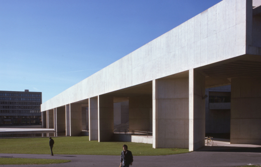 In the generation following the Second World War, the University of Massachusetts Amherst engaged in one of the most ambitious academic building programs in the United States. Following a 1963 master plan by renowned landscape architect, Hideo Sasaki, UMass Amherst employed some of the most distinguished architects of the time such as Marcel Breuer, Kevin Roche, and Edward Durrell Stone, who remade the campus in a distinct Brutalist style.
