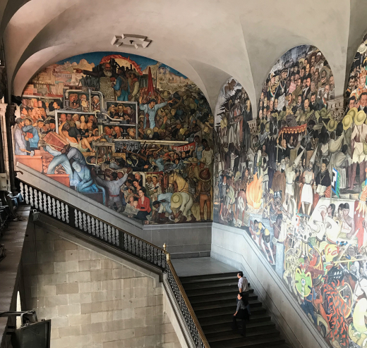 Highlights of the tour include a special visit to the house and studio of Luis Barragán and the Barragán designed Gilardi House; many important sites by the Mexican architect Mario Pani including the Universidad Nacional Autónoma de México (UNAM) campus (pictured above); the Rivera-Kahlo house and studio designed by Juan O’Gorman; and a special full day exploration of the works by Felix Candela including the breathtaking Los Manantiales restaurant (bottom left). Guests will have the opportunity to visit some of the most important works by Diego Rivera including the murals at the Palacio Nacional (bottom right) and Carcamo de Rio Lerma, with an afternoon visit to the Anahuacalli Museum. A full day tour to the archeological site Teotihuacan is planned. This is unique travel opportunity in a small group setting featuring access to modern homes and buildings considered off the beaten path or not ordinarily open to the public.