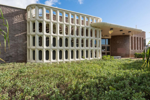 In addition to the DMJM (lead architect Cesar Pelli) designed Kukui Gardens, other HRA projects included in the tour will be Minoru Yamasaki’s Queen Emma Gardens, Geoffrey Fairfax’s Liliha Square, and Leo Wou’s Kauluwela I and II housing projects, as well as his Aloha United Fund headquarters. Other HRA projects featured will be the Keola Hoonanea elderly housing project designed by Honolulu architect Frank Slavsky, and George Walters’ Nuuanu Stream promenade, the largest landscape project undertaken by the HRA. Other buildings along the tour route will include the Liliha Library, the former American Security Bank designed by Edwin Bauer, the Lung Kong Kung Shaw Society Hall, and the Liliha Sunrise Apartments, all along Liliha Street.