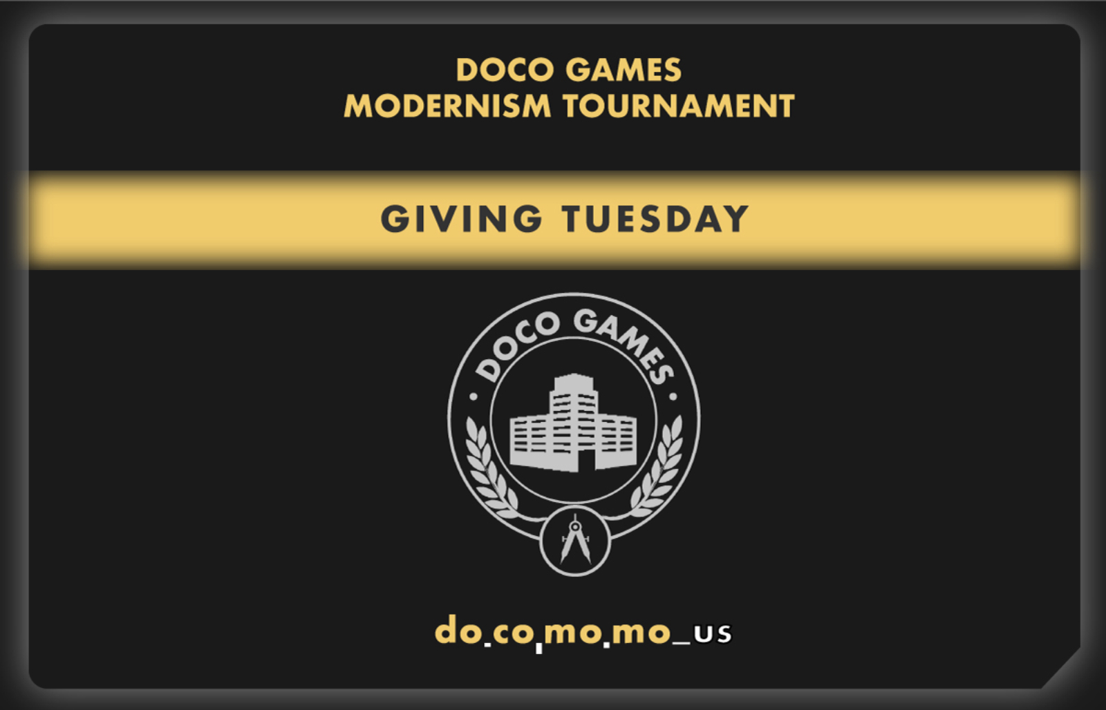 To participate in this year's tournament, which will take place on December 3rd, email info@docomomo-us.org by this Thursday 11/21 at noon, EST with your name, contact info and social accounts, and the modern site you'd like to fight for.