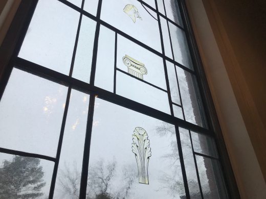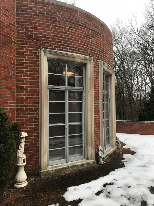 The carved exterior brickwork is a signature of the house, most notably featuring the first few bars of Mozart’s Symphony No. 40 in G minor, which Alice Meyer told Eames was her favorite. Eames designed the metalwork throughout the property and enlisted St. Louis artists and artisans, including Emil Frei, to create the home’s stained glass windows. “It was a collaboration of the leading artists and designers in St. Louis at that moment,” according to Genny Cortinovis, assistant curator of decorative arts and design for the Saint Louis Art Museum.