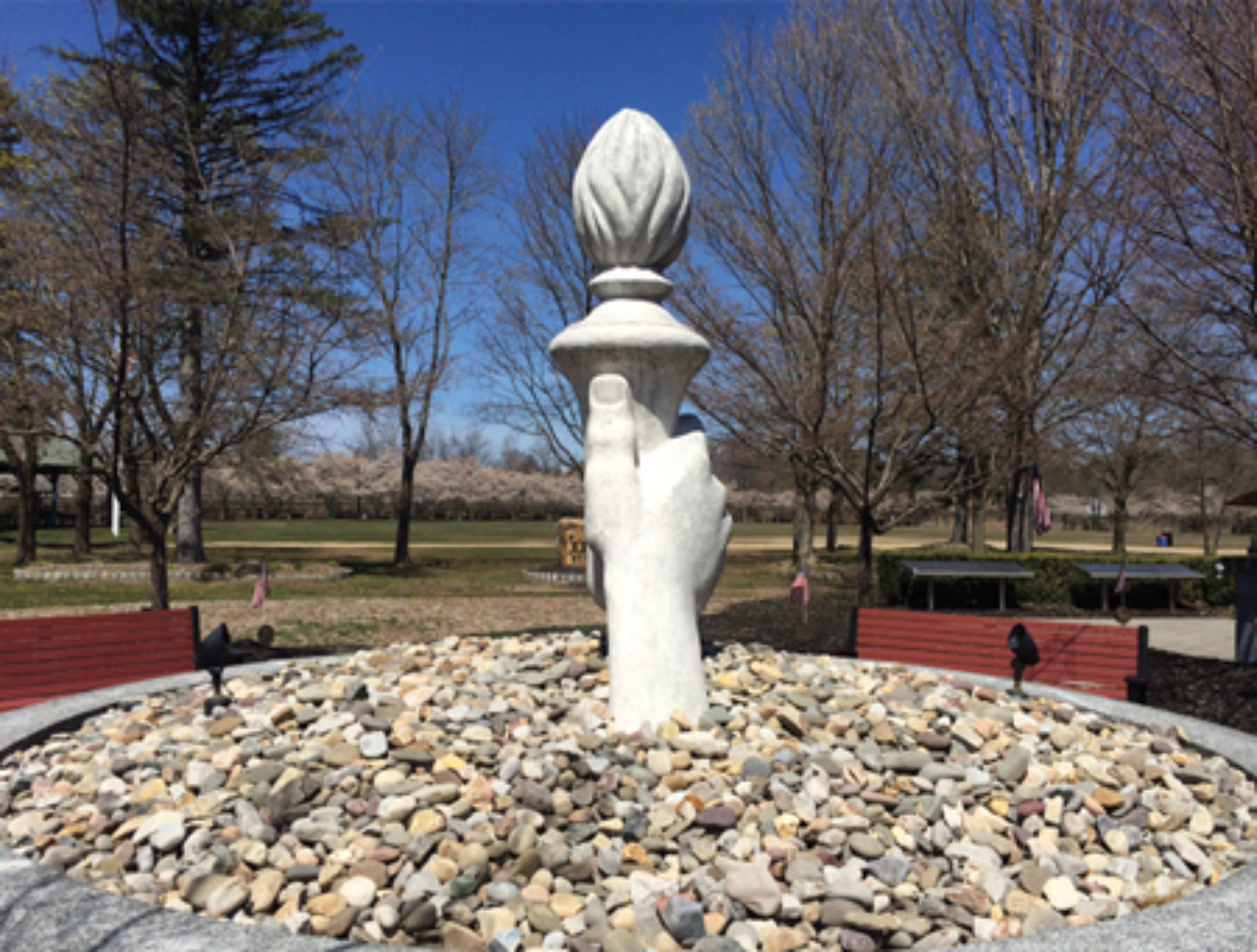 Isolated examples of Modern abstraction do exist beyond academic settings, but they are rare. Burnett Zeek’s Eternal Flame (Roxbury, NJ) has stood as a memorial to those who served the nation during World War II since 1959, surviving relocation from its original site at the police headquarters to an even more public setting in a large and heavily utilized municipal park. While it appears slightly surreal in the way it emerges from a bed of crushed rock, Eternal Flame is actually part of a long tradition of hands in public sculpture, which have been used since the early 20th century to convey notions of power, benediction, and even tenderness. It would not be unreasonable to assume that Zeek was inspired by one of the most famous examples of a hand holding a torch – the Statue of Liberty – particularly as Roxbury is within an hour’s drive of Liberty Island.