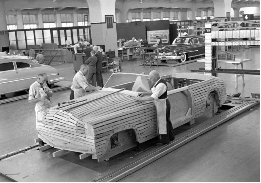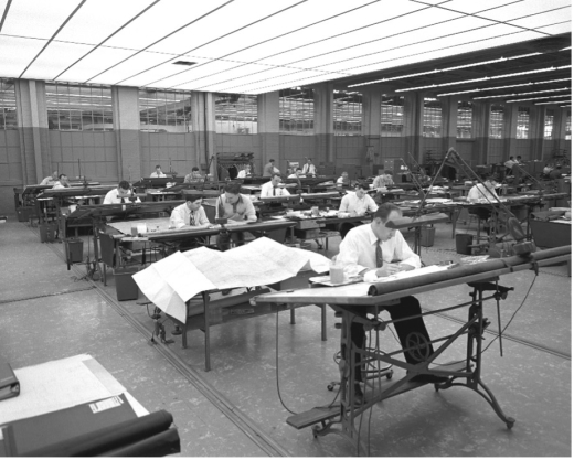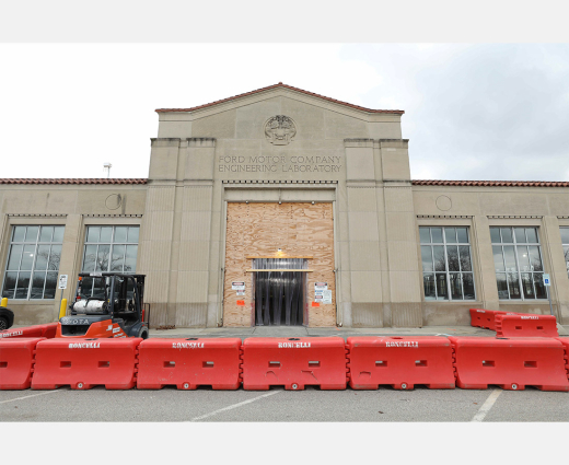 The Ford Motor Company corporate campus is located about 10 miles west of Detroit in the city of Dearborn. Ford first began purchasing property here along the Rouge River in 1915, but it was not until 1917, with the impetus of World War I, that they completed the first structure to produce eagle boats for the war effort. Countless additions later, the Rouge complex, now referred to as the Ford Rouge Center, is still operational and is itself an exemplar of adaptive reuse. The expansion of production at the Rouge anchored Ford in Dearborn, where the company would continue to expand its campus, especially after World War II.