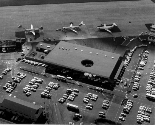 This recommendation confirmed his status as Hawai`i’s top architect and allowed him to adapt his lanai concept to a large-scale building with restrictive design needs. His initial assignment in 1970 was to improve the existing John Rodgers Terminal, which had been designed by the local architect Theodore Vierra (1902-1987) and completed just seven years prior. The Rodgers Terminal had been obsolete almost as soon as it opened. Within a year of its completion, Boeing announced the imminent production of its 747 jumbo jet, which would require two-story departure gates and larger runways than the “new” airport provided. Soon after, Pan American World Airways announced plans for a regular jumbo jet flights to Honolulu. State funds were appropriated almost immediately.