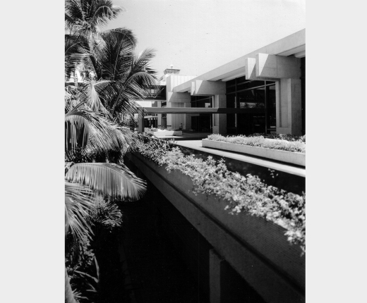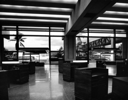 Working with Vierra’s footprint, the Ossipoff office designed the new Central Concourse, to create a series of larger and higher enclosed passenger gates and holding areas to accommodate the new aircraft. Although the gate–holding areas are under roof, Ossipoff’s team recognized the genius of the Vierra-Tongg design and kept the sides of the covered concourse open to the garden within it. The Central Concourse and passenger holding area were Ossipoff’s final contributions to the airport project.