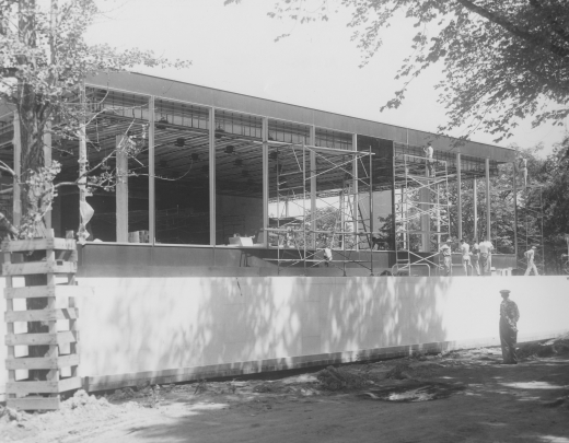 Edward B. Green was the architect of the historical Albright Building (1900) and Augustus Saint-Gaudens was sculptor of the caryatids on the East side of the historical building. Bunshaft and SOM (Skidmore, Owings and Merrill) were the responsible architect and architectural firm of the Knox addition (1959).