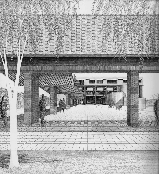 Master Planner: Edward Larrabee BarnesGreat Court, Post Office & Library: Edward Larrabee BarnesPerforming Arts Center: Edward Larrabee BarnesVisual Arts: Norman Fletcher, The Architects CollectiveRoy R. Neuberger of Art: Philip Johnson and John BurgeeHumanities: Venturi and RauchSocial Sciences: Venturi and RauchNatural Sciences: Paul RudolphDance: Gunnar BirkertsMusic: Edward Larrabee BarnesStudent Activities A & B: Edward Larrabee BarnesResidential Complex A: Gwathmey, Henderson & SiegelResidential Complex B: Giovanni PasanellaHealth and Physical Education: Edward Larrabee BarnesService Buildings: Gwathmey, Henderson & SiegelTheatre Arts: Never RealizedLandscape Architect: Peter G. Rolland & AssociatesElectro-Mechanical Engineers: Segner & DaltonAcoustical Consultants: Bolt Beranek & NewmanTransportation Consultants: Voorhees & Associates, Inc.Soils Consultants: Fred N. Zercher & Associates