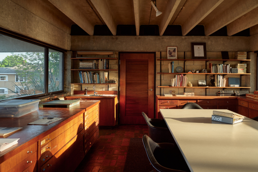 A Commercial Design Citation of Merit is given for the restoration of the Gene Leedy Office in Winter Haven, Florida. Designed by Gene Leedy and completed in 1961, the building is an excellent example of regional modernism in Florida, featuring Leedy’s signature double T and screen wall construction method. Restoration focused on repairing deteriorated exterior structures, clearing overgrown landscaping, refinishing interior and exterior brickwork for warmth, restoring double-height glazing to bring in more natural light, and refurbishing cabinetry in the office and drafting loft. Recovered from years of neglect and damage, the office functions once more as an architecture office, actively reaffirming its importance to the local design community.