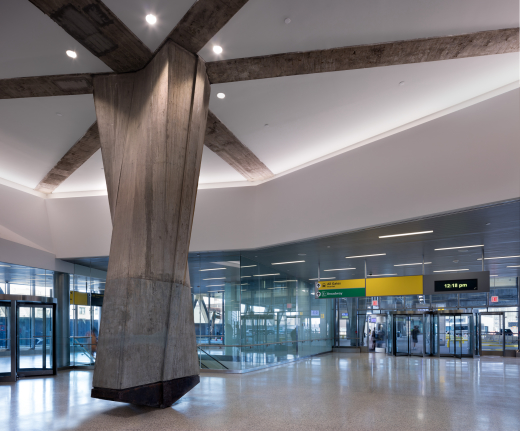 The jury awards a Citation of Merit for the restoration of the George Washington Bridge (GWB) Bus Station. One of two buildings in the United States designed by Dr. Pier Luigi Nervi, the George Washington Bridge Bus Station opened in 1963 in conjunction with the lower level of the George Washington Bridge and the Trans-Manhattan Expressway. The facility’s architectural expression is a tour-de-force that incorporates concrete trusses and a unique butterfly-like roofscape above the West Building. After suffering from a certain degree of benign neglect, the building was identified in an Authority-wide study as a prime opportunity for revenue enhancement. In 2008, the Port Authority of NY & NJ selected a developer and STV, Inc. as the restoration architects. Although the GWB Bus Station is not a designated landmark, it was treated as such, and conceptual efforts were shared with the New York State Historic Preservation Office and the New York City Landmarks Preservation Commission. Great attention was paid to developing a ‘modern intervention’ that is respectful of the historic structure, and in fact celebrates the structure, by its sensitive incorporation into the new program.