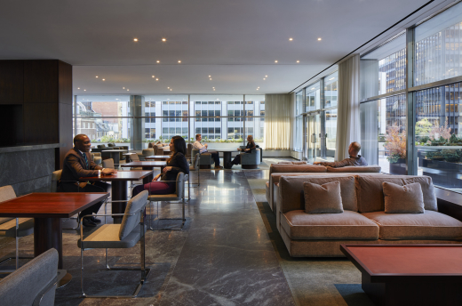 A Commercial Design Award of Excellence is given to Lever House, a paragon of Modern architecture that revolutionized commercial office design upon its completion in 1952, setting a new standard for the relationship between office spaces and the urban environment. Designed by Skidmore, Owings & Merrill (SOM), its sleek, blue-green glass and steel facade contrasted starkly with the city’s traditional masonry, signaling a shift toward modern skyscraper design that influenced generations of architects worldwide. Over the years, SOM has provided ongoing stewardship of its iconic building, including a façade restoration in the early 2000s. However, after 70 years of operation, it needed a more comprehensive overhaul. The finished product includes a revitalized lobby, ground-level public plaza, new building-wide amenities, entirely modernized building systems, and a rehabilitated curtain wall. The work was completed with a level of detail indicative of SOM’s intimate knowledge of the building. In the public plaza, new long-lasting paving was installed and the ceiling was replaced in-kind. Stainless steel panels and the white marble enclosing stair towers were re-honed and polished. Moving inside, the lobby’s terrazzo flooring underwent repairs, lighting was upgraded, and the elevator vestibule feature wall of yellow Murano glass mosaic tiles were cleaned and earlier damage repaired. An invisible intervention within the curtain wall addresses condensation issues, supporting long-term preservation. Changes to the mechanical systems on the office floors contribute to new LEED Gold and WELL Platinum certification targets and allow floor space and ceiling height to be expanded, ensuring the space maintains its Class A office classification. At a time when commercial office spaces face an unclear future, Lever House once again sets an example for others to follow.