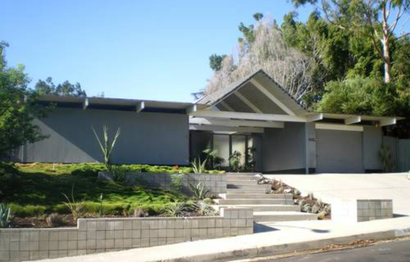 Constructed by seminal California developer Joseph Eichler between 1962 and 1964, the modest yet striking middle-class homes of the Balboa Highlands tract in the Granada Hills section of the San Fernando Valley embody Eichler’s vision of modern architecture for everyone. The houses of Balboa Highlands, including the Foster Residence, generally exhibit four basic models with three roofline types: flat, A-frame, or slant. All of the buildings have simple front façades with unassuming clerestory windows, but within each house is an open atrium courtyard and floor-to-ceiling glass walls opening to the atrium and rear yard. The highly functional interiors are filled with natural light and have partially open floor plans with a communal feel. Balboa Highlands, one of only three Southern California projects Eichler completed, remains a rare regional example of a development by one of the state’s leading proponents of modern living. (Adapted from the website of the Los Angeles Conservancy)